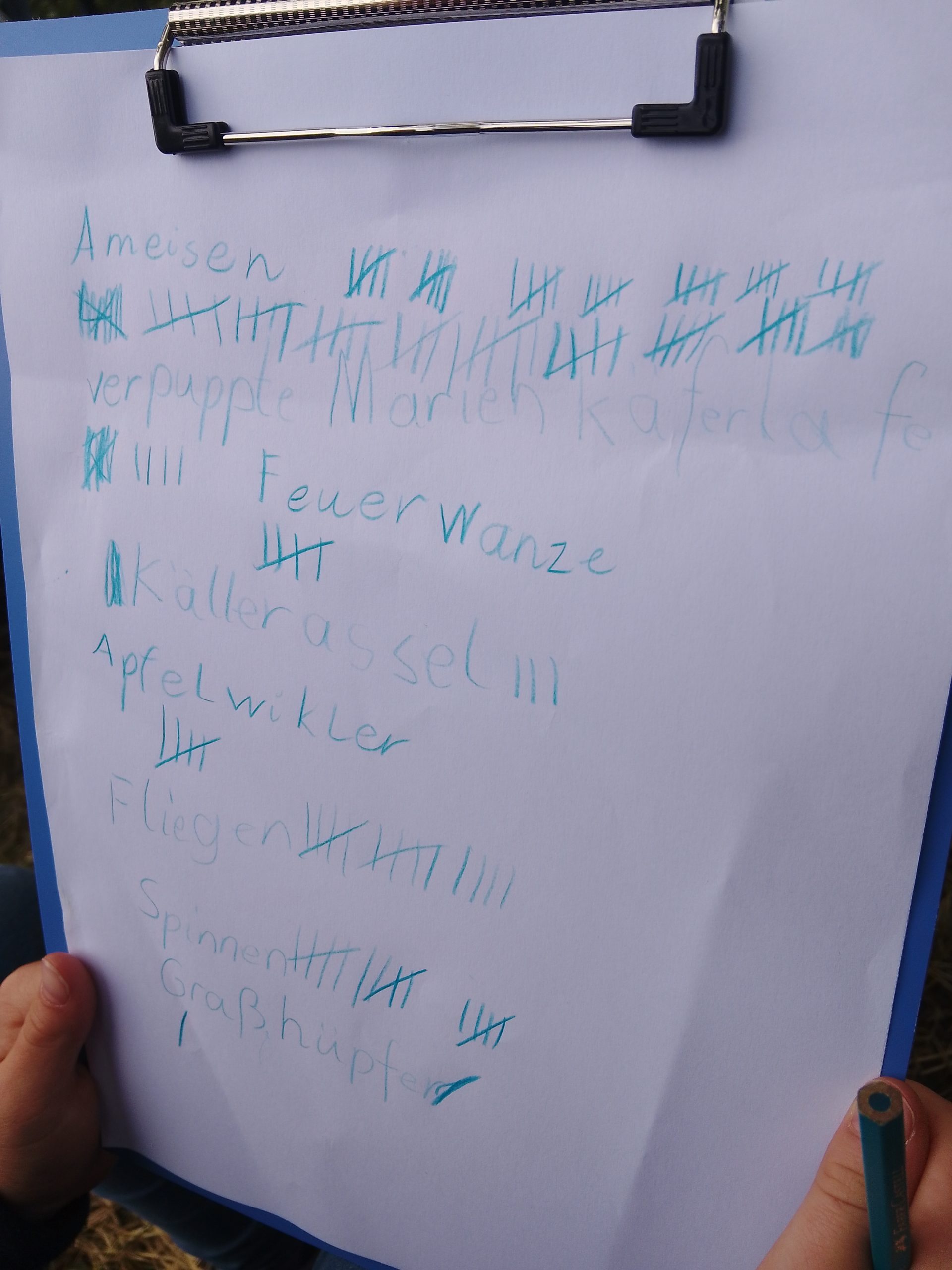 Hier ein Beispiel, was eine 2. Klasse der Annaschule aus Alfter auf ihrer Expedition zum Thema Insekten so alles gefunden hat: